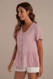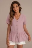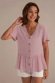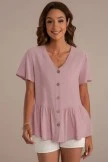 The Solid Color Short Sleeve V Neck Button Top is the perfect top with any skirt midi or maxi! We love pairing it with a denim skirt, or dressing it up with a knit skirt too! Functional buttons + the peplum hem makes this easy to wear with a baby bump if you choose! It is very comfortable with a durable material and will look great all year long!