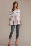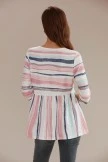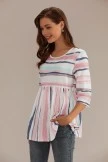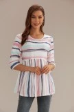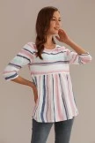 Honestly, this top is perfect for almost any causal event! It’s a little casual, a lot cute, and easily styled with denim shorts or jeans! We are in love with those colors too! This top features a round neckline, half sleeves, a babydoll fit, and a unique striped print. Material has generous amount of stretch.