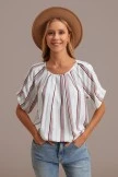 From work to weekend, this blouse does it all. Featuring pleat neckline details, stripe pattern+ a beautiful bubble style. This top will pair well with denim shorts, pencil skirts, or leggings. It’s the kind of top you are going to thank yourself for getting. Because you are just that good 🙂