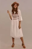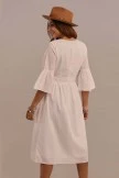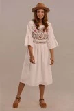 Serving looks at brunch this Summer. 3/4 length bell sleeves, embroidery details, and an elastic waist, what more could you want? Pair with cute sandals and a brimmed hat!Â