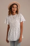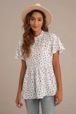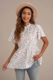 Every woman needs a white blouse that looks perfect with jeans and can be easily dressed up or down. This blouse features super stretchy, textured material, mock neck, keyhole back + button closure, and a peplum silhouette. Effortlessly pair this blouse with your favorite denim shorts, skirts, and jeans for a casual-look.