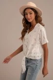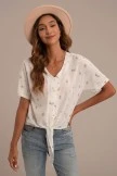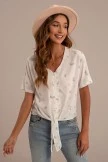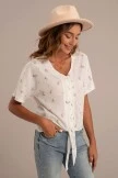 Featuring a vibrant shade of floral paired with a wonderfully soft material, it’s perfect for cool spring & summer days. This top features a v-neck, functional buttons and front tie detail. Just add jeans or shorts and sneakers for a fun casual day look! Â