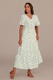 The White Floral Short Sleeve V Neck Tiered Maxi Dress is a dress you will want to wear all season long! Designed for all day comfort with a fit and flair style skirt. It features a v-neck and pairs great with your favorite flats for easy photo session styling!