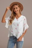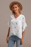 A top with a little detail is the prettiest piece of clothing! Features on this one include floral prints, a V neckline and ruffled cuffs. It’s a nice casual piece you can wear during the daytime with denim shorts, lace up sandals, and a few mixed accessories. Perfect for brunch with a friend or mid-afternoon walk with a loved one!