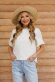 If statement sleeves are your thing, this is the blouse for you! Featuring eyelet details and a high neckline, this dainty blouse is the perfect piece for summer. It’s so cute with a pair of jean shorts and sneakers!