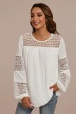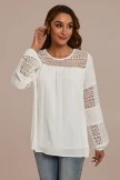 Lace insert on chest and sleeves, keyhole button closure at back neck, long sleeves with elastic at the cuff, scoop neck.