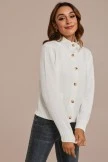 Check out the White Mock Neck Button Front Knit Cardigan! It’s got modern mockneck silhouette, relaxed fit that’s just perfect for those laid-back days. The side pockets are so handy! But you know what’s even cooler? It’s got mock neck for that extra cozy and trendy vibe. This cardigan is a must-have in any wardrobe!