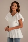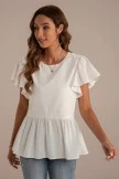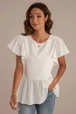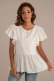The textured fabric and lined makes this top come together in ways that blow us away. There is a crew neckline, a relaxed peplum bottom and the short flutter sleeves are our favorite. This white top can be paired easily with your favorite denim and sandal this summer.