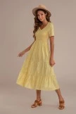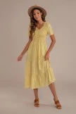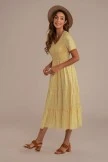 Yellow floral print girl maxi dress has a subtle ruffled skirt, v-neck, short sleeves, and flounce hem. Perfect for that anniversary or any other special occasion.